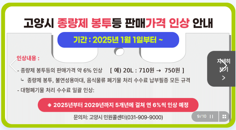 - 인상항목: 종량제봉투, 대형폐기물, 소형폐가전