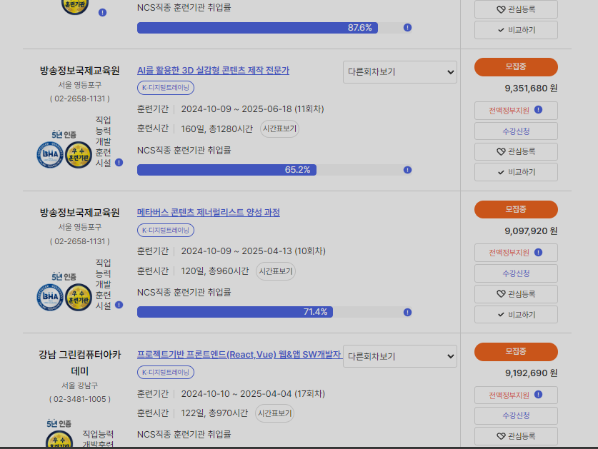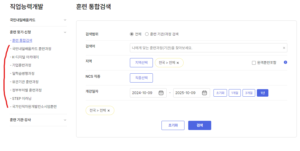 '고용24'에서는 직업능력개발 > 훈련 통합검색이라는 카테고리가 있습니다. 아마 고용24를 자주 이용하지 않는 분들은 찾기 어려우실거 같아서 위에 쉽게 찾을 수 있는 위치 공유드렸습니다.