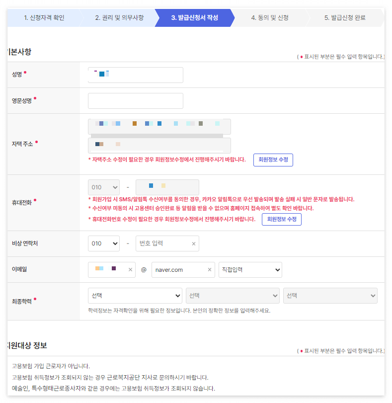 5️⃣ 발급신청서 작성 >> 다음