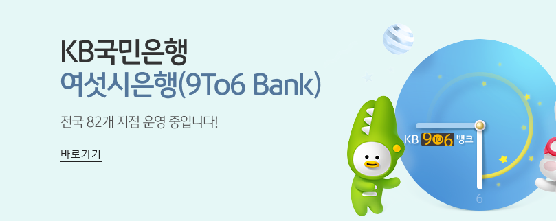 6시까지 영업하는 은행은 "특화지점"으로써 직장인, 영업직 등 많은 근로자들의 불편을 해결해주기 위해 생긴 차별화된 KB은행의 영업점이라고 합니다.