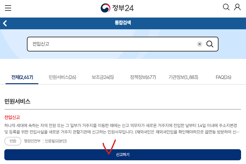 1️⃣ 정부24 '전입신고' 페이지 들어가기