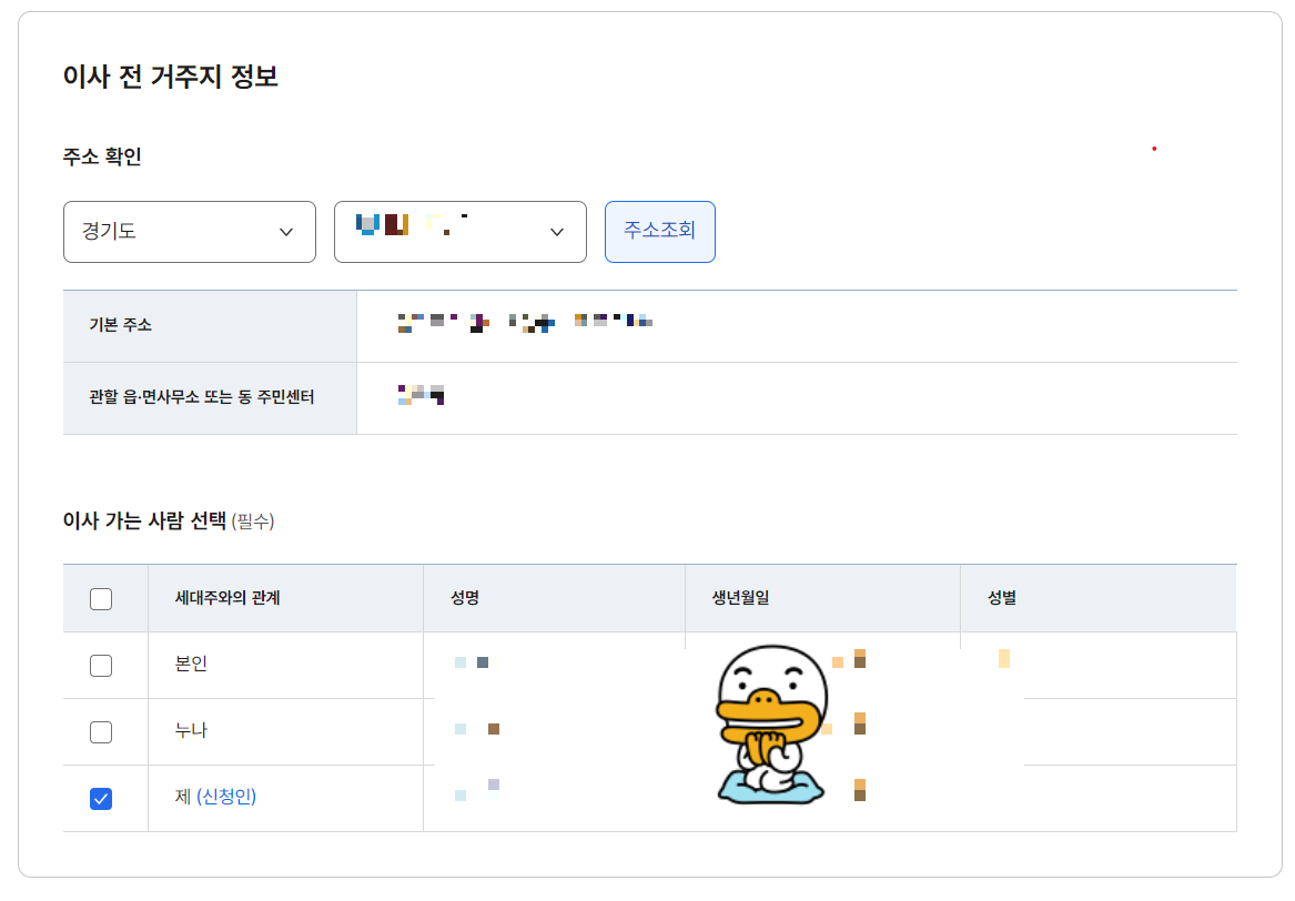 신청서는 개인정보/ 기존주소/ 이사갈주소 등을 입력하시면 됩니다. (서류필요❌)