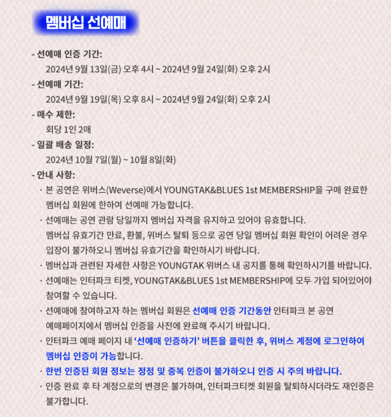 1. 위버스 멤버십 구매한 분들을 대상으로 한 선예매 안내문입니다.